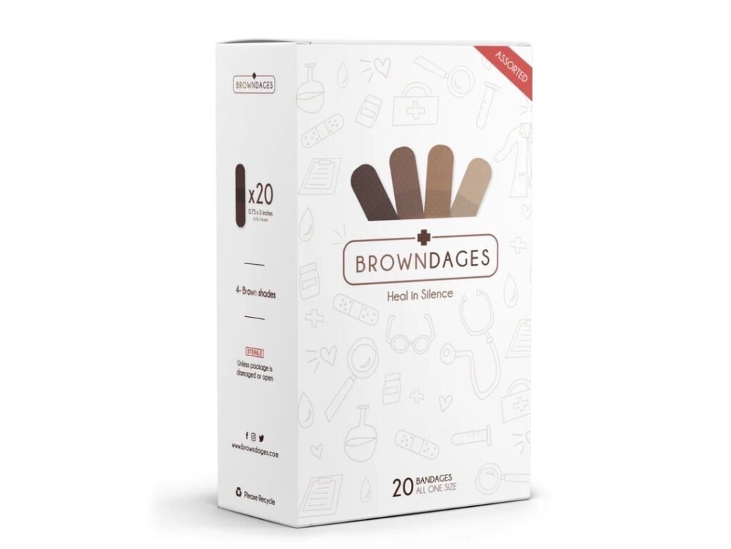 Browndage is a thoughtfully designed skin-tone bandage created to better match brown and darker skin tones. Traditional bandages often stand out visually, but Browndage offers a more natural look that blends with the skin, helping users feel comfortable and confident while healing.